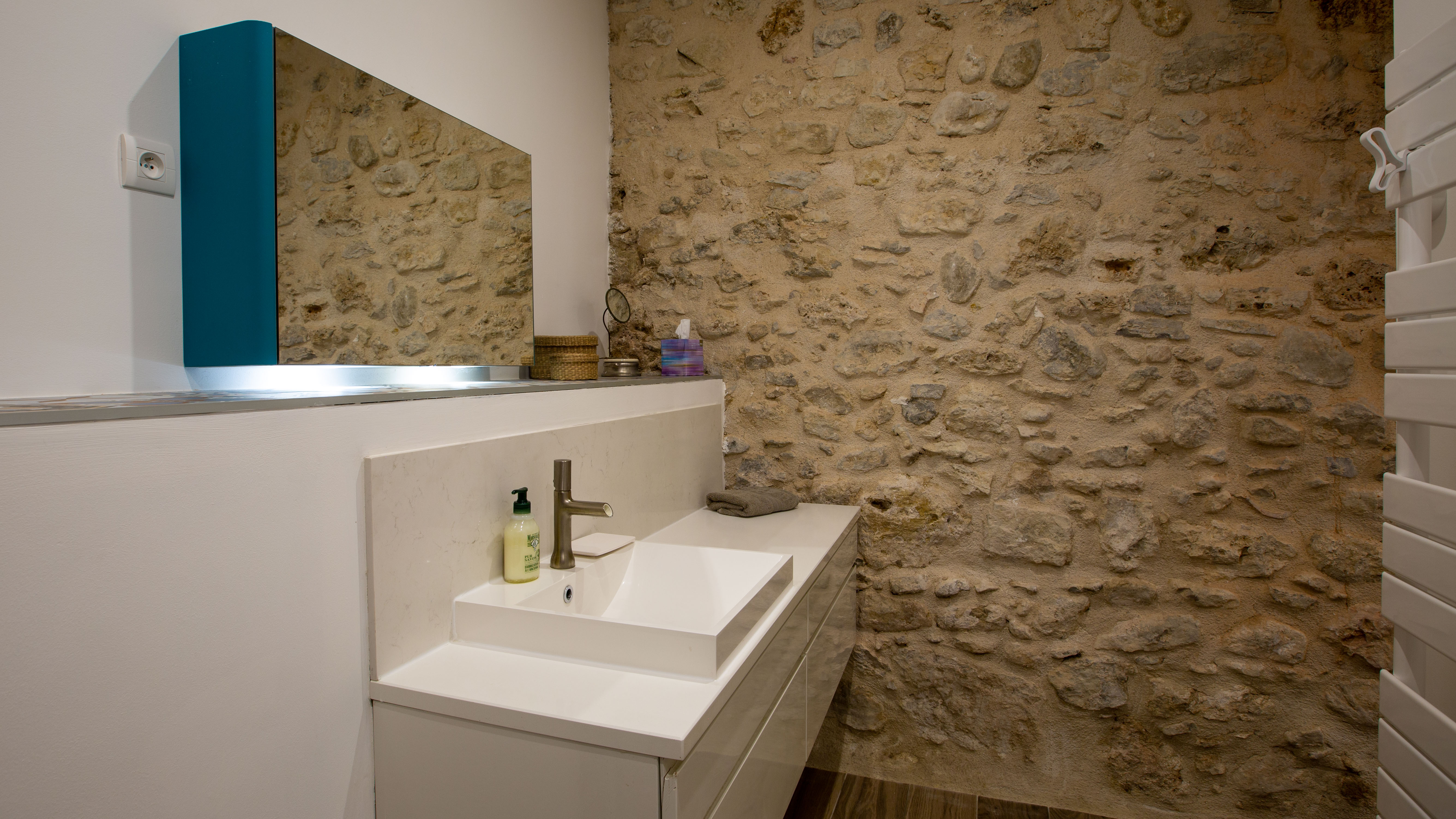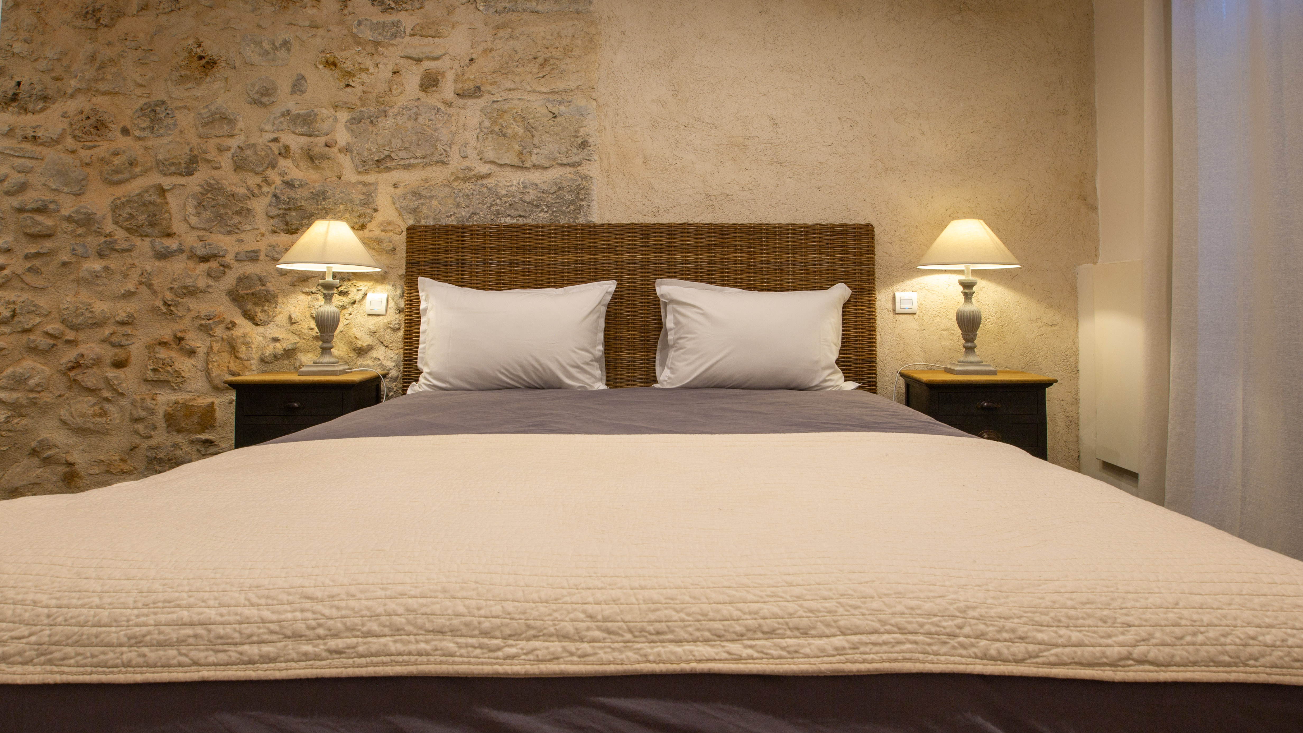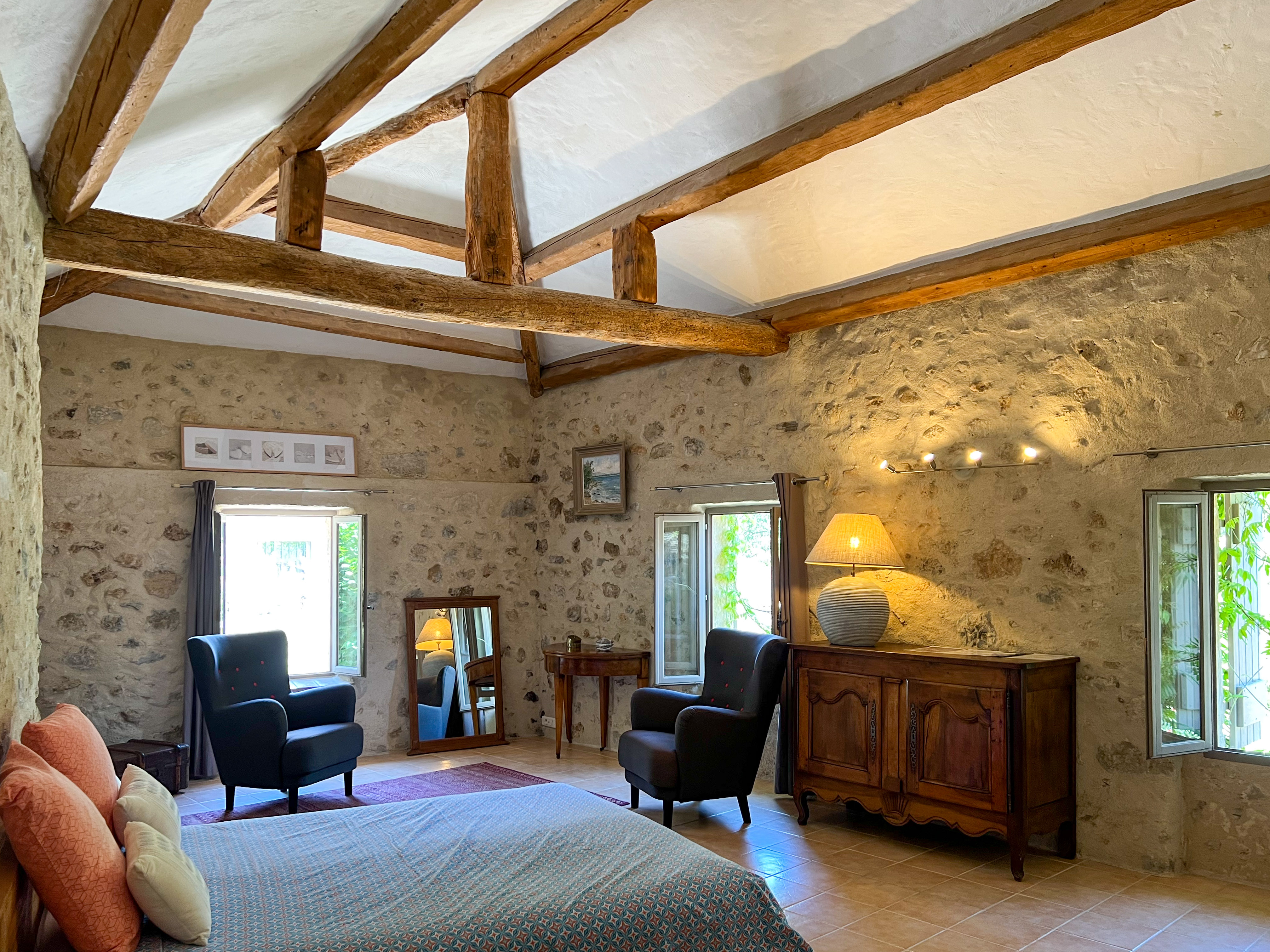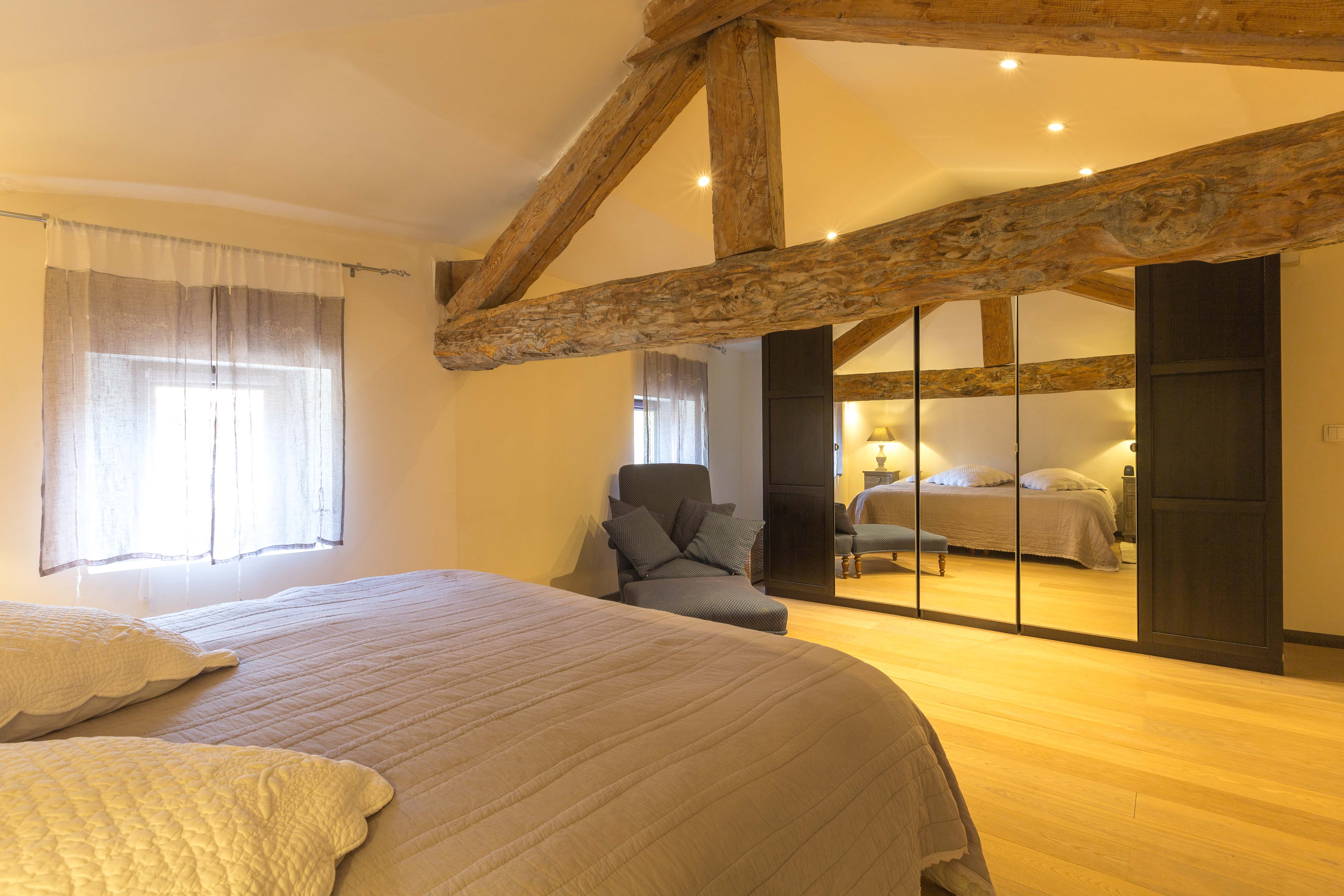 This beautifully restored 100m2 first-floor apartment provides a special level of comfort and living volumes. With plenty of natural luminosity, complete calm, privacy and a unique mix of modern convenience and ancient stonework on a single level of accommodation for up to two people. Beautiful stone walls, numerous ancient beams, a dressing room and kitchen & dining area all contribute to create an exceptional place to stay.