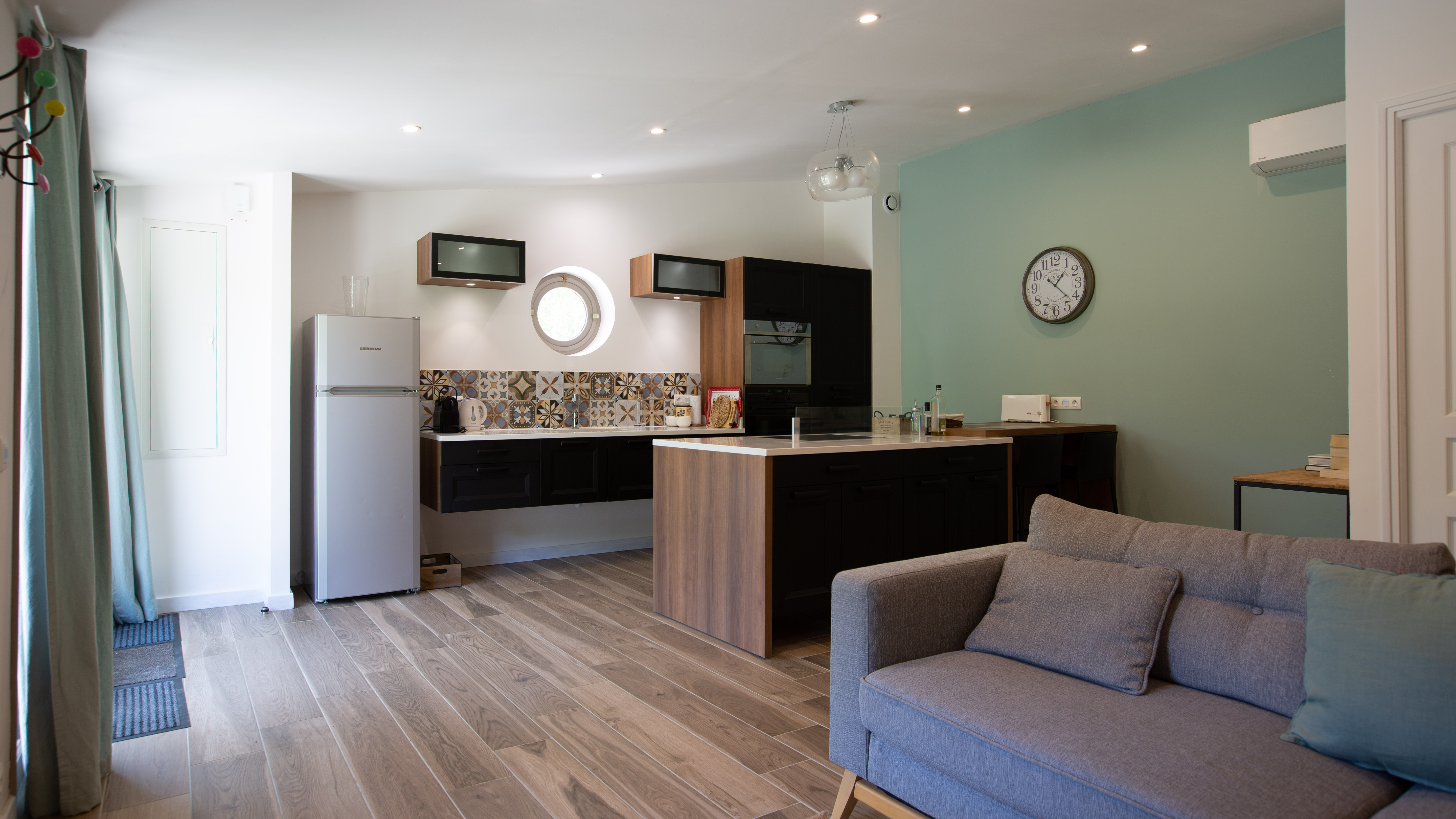 This beautifully restored 50m2 apartment provides complete calm, privacy and a unique mix of modern convenience and ancient stonework on a single level of accomodation for up to three people. Beautiful stone walls and a high specification modern kitchen & dining area all contribute to create an exceptional place to stay.