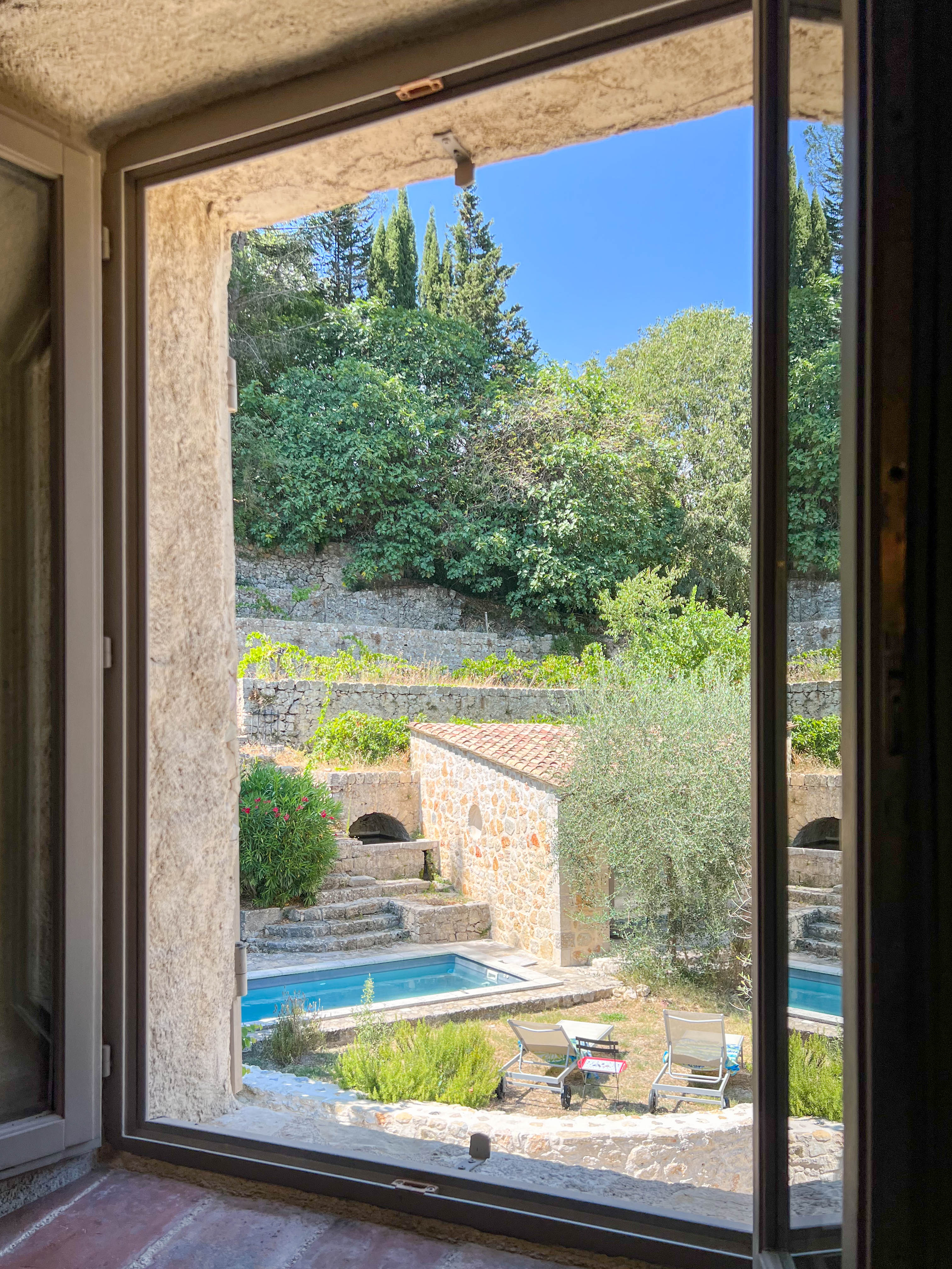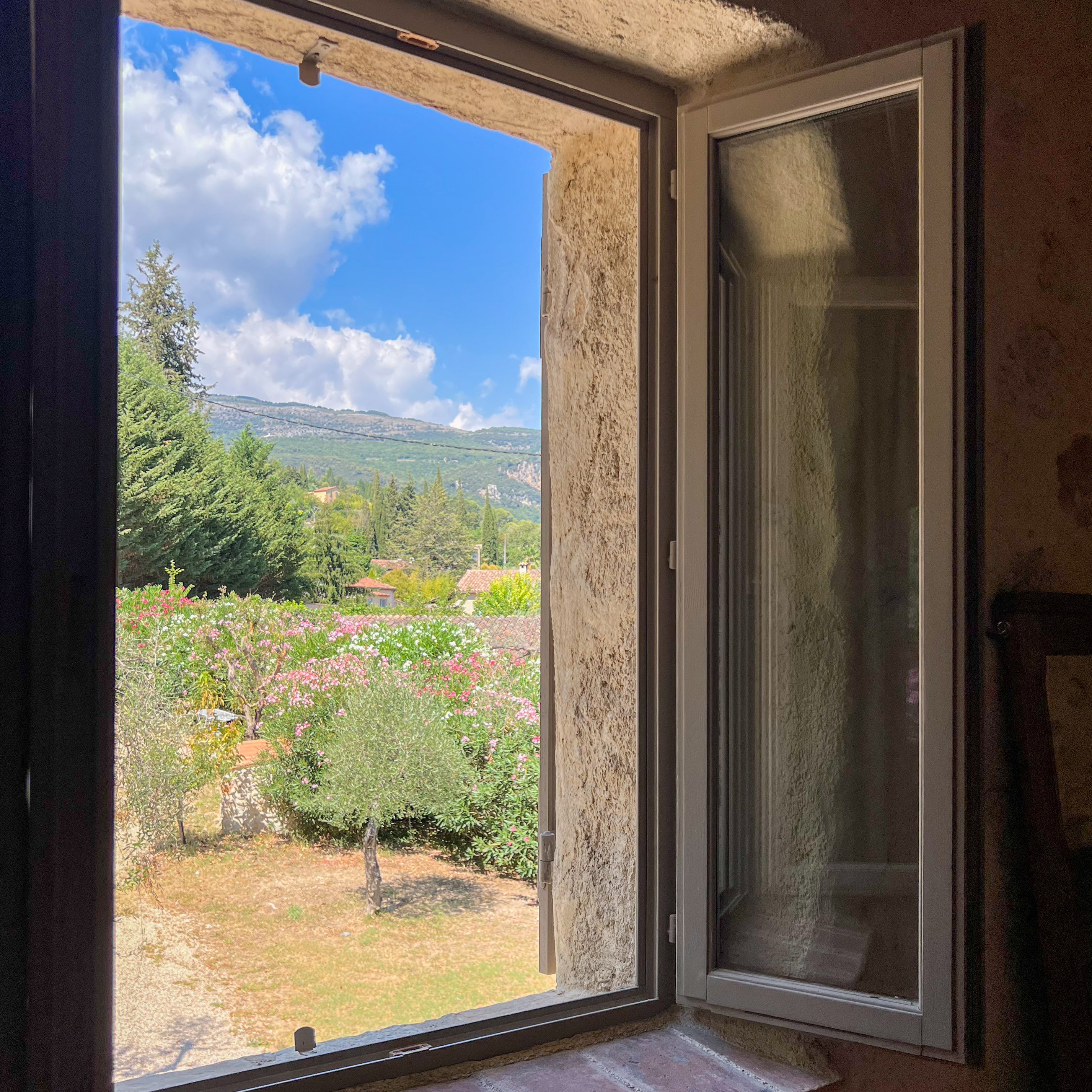 - East and West facing with views over the pre-Alps, Tilleul-shaded terrace, pool and interior court of the Mill